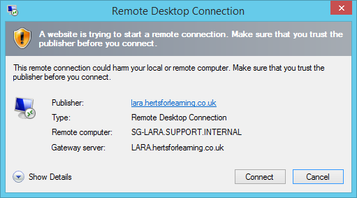 Using a web browser (preferably Internet Explorer), navigate to the following URL – https://lara.GOFFS.herts.sch.uk