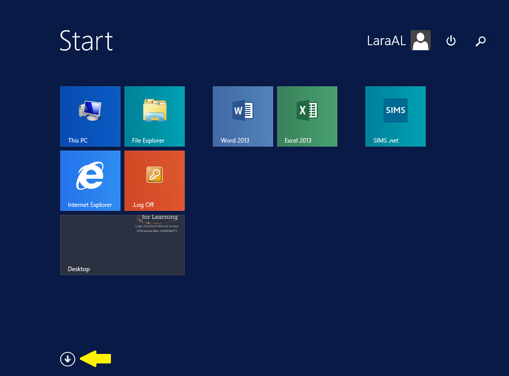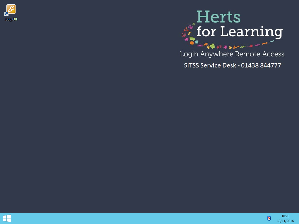 When you have finished, please ensure that you save any open work and then close down the session correctly by clicking ‘Log Off’ (either from the desktop or the Start Screen).